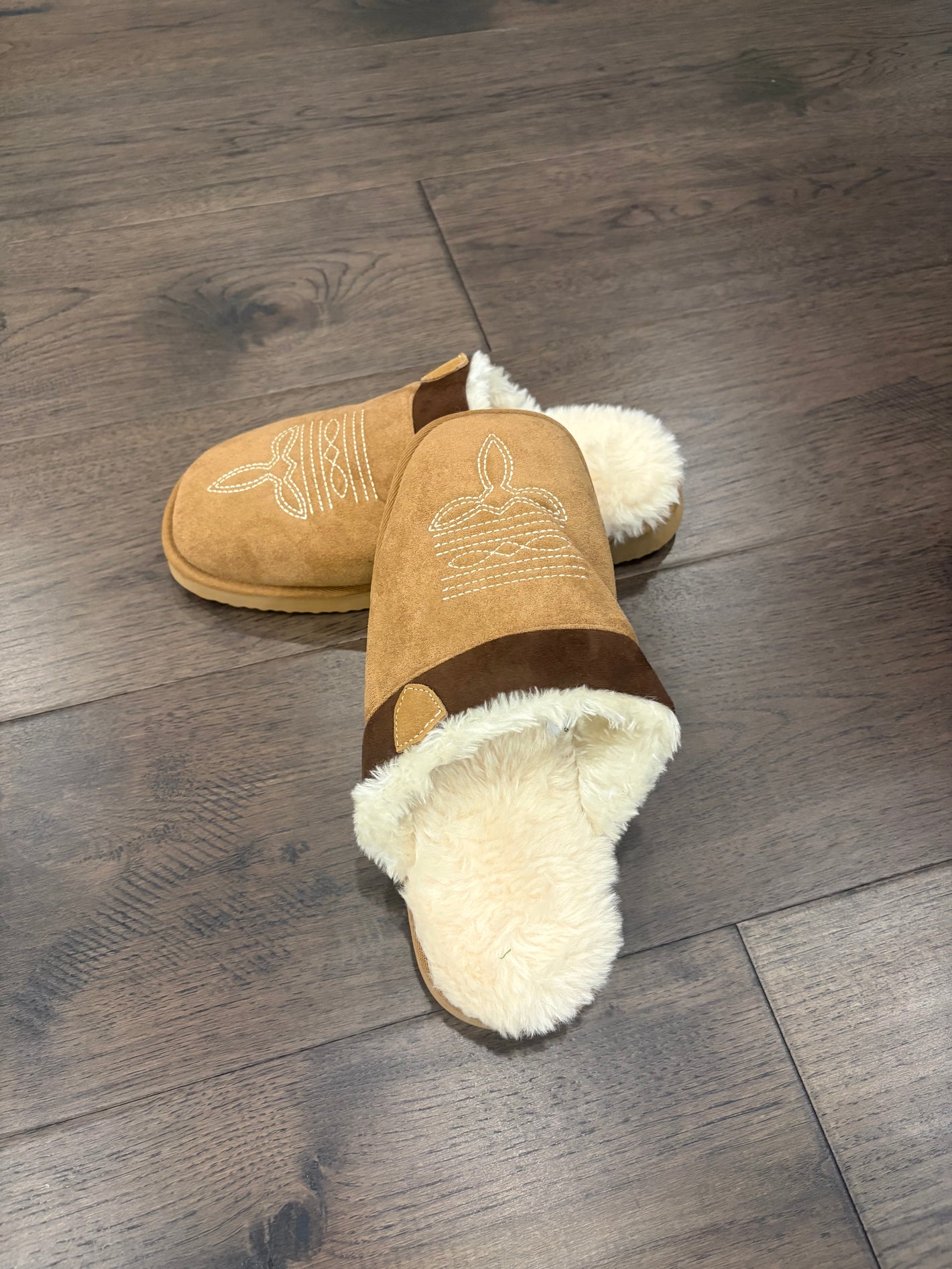 The lining is super plush and the western detail is a nice touch. They feel way nicer than big-store slippers.